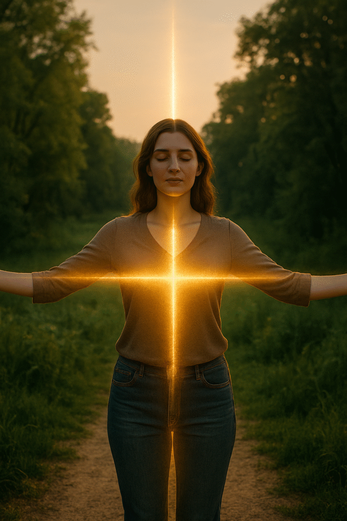 This downward movement brings us back to earth. It is the grounding force, the embodiment of belonging. Spiritually, it reflects the descent of grace, the path of incarnation, and the fullness of being here, now, in this body and this life.